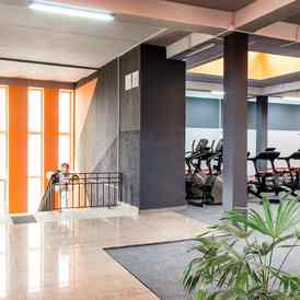 Зал, площадью более 450 кв. м, оборудован современными тренажерами от ведущих мировых производителей Matrix и Inter Atletika, предназначенных для работы над всеми группами мышц. Также локация оснащена внушительной кардио зоной, широким гантельным рядом и различными грифами, блинами и дополнительными приспособлениями. Кроме того, имеется отдельный зал фитнеса (100 кв. м) и детская студия (40 кв. м).